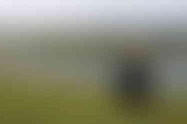 We walked a little bit more of the trail till we got to a lagoon, there was a small hill with rocks that seemed to be cutting out from the green grass, and always with that fog further away keeping us company, keeping the mood somewhat magic. We decided to have lunch there, and it was the wisest decision because in the hill there was something similar to a covered balcony to protect us from the strong rain that fell for a while. Luckily, our years spent in Iceland, got us ready to every kind of weather and we were fully equipped with waterproof clothes, head to toe, including waterproof bags for wallets and gadgets, and my waterproof cover for my camera, my beautiful blue plastic bag. Ahahah!