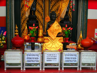 Acabada a visita ao museu, fomos visitar outra pagoda recomendada pelo Niko, e era realmente maravilhosa, cheia de cores, estátuas, bonecos, flores e árvores e stupas, mil e uma coisas, mas em todas elas há um clima de paz apesar da explosão visual. Terminada a visita fomos buscar as coisas do Daniel e passámos novamente nos Jardins Reais, quando eu comentei a história dos morcegos e ele confirmou-me, e mostrou-me os morcegos, que afinal eram aquilo que eu pensei ser as folhas das árvores, eram realmente imensos!! ahahah