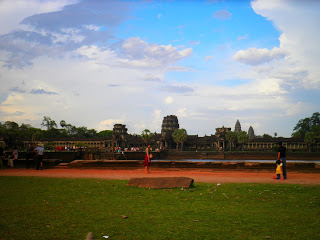 O pôr do sol era em Phnom Bakeng, um dos templos numa colina, mas ao passar em frente a Angkor Wat, fiquei sem palavras, é um templo, um lugar, um espaço, um momento, grandioso!! Nunca pensei que um sítio pudesse exceder em tanto as expectativas e as imagens vistas! Mas o interior era para a madrugada seguinte, ao nascer do sol.