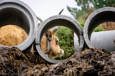 No ponto mais alto, o trilho entra por uma floresta, que em tudo se parecia com um bosque encantado dos contos de fantasia, com alguma neblina à mistura para reforçar o ambiente mágico, e também já alguma coloração de Outono. Durante todo o caminho fomos ouvindo o som dos chocalhos e vendo algumas vacas, estas vacas da raça Cachena são por norma pacíficas e não muito grandes, são castanhas e possuem cornos. Vivem pelas montanhas durante todo o ano, pois têm grande resistência às mais adversas condições atmosféricas. Encontrámos ainda dois cavalos pelo caminho e tal como as vacas, não estavam minimamente interessados na nossa presença, o que nos permitiu estar descansados e observar as lindas paisagens tranquilamente.